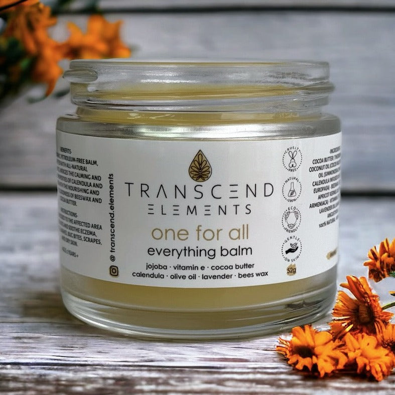 One For All is an organic, zinc-free, petroleum-free balm crafted with a blend of protective and nourishing ingredients. This balm helps to soothe dry skin and alleviate symptoms from common skin irritations.