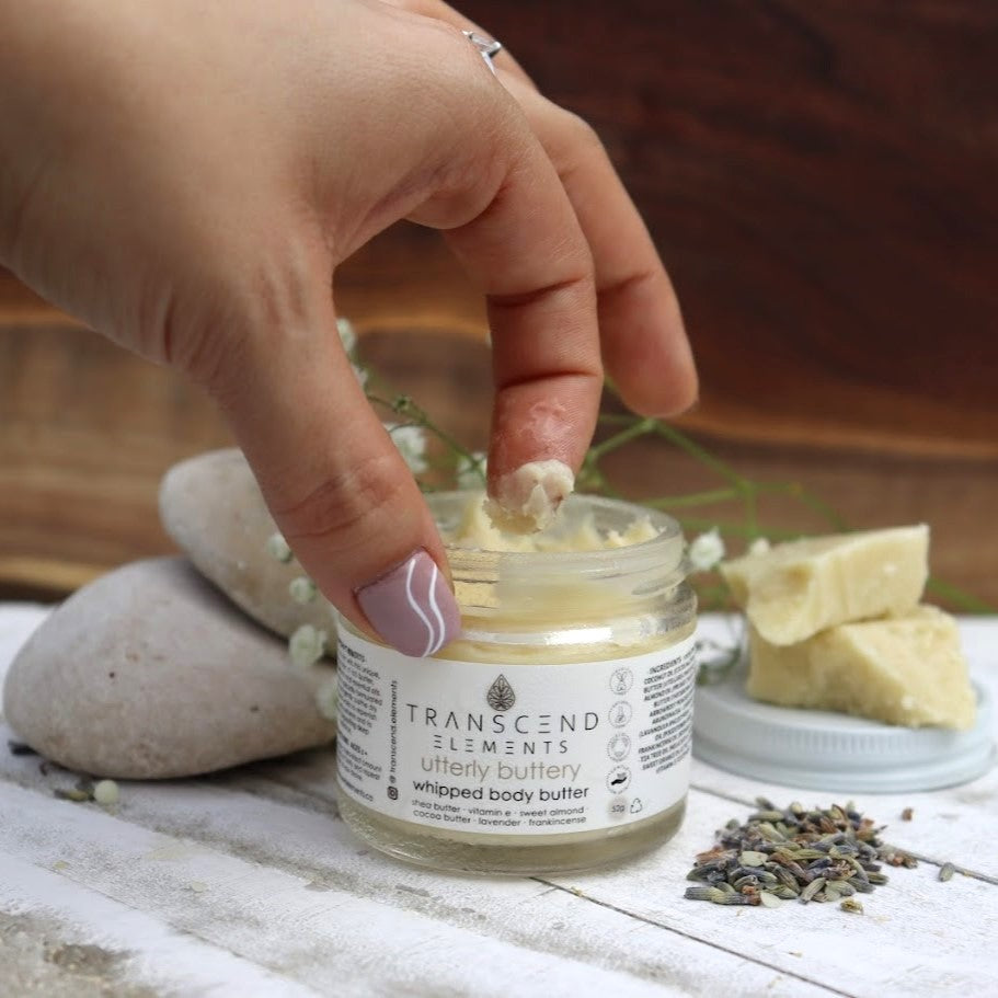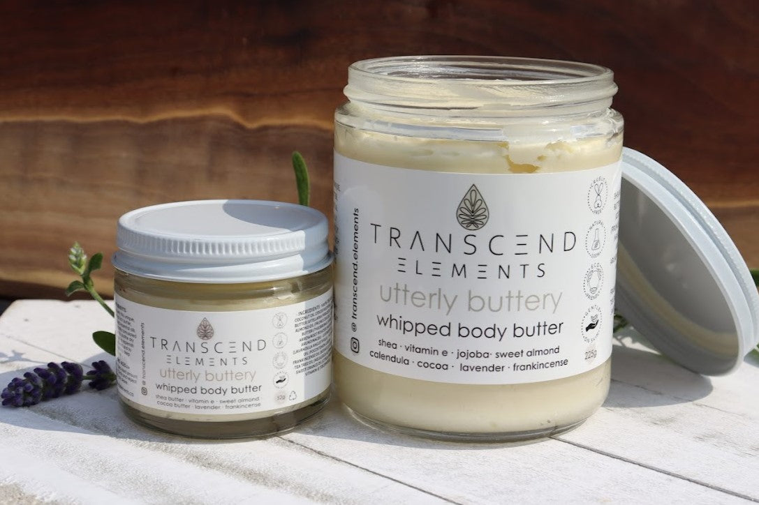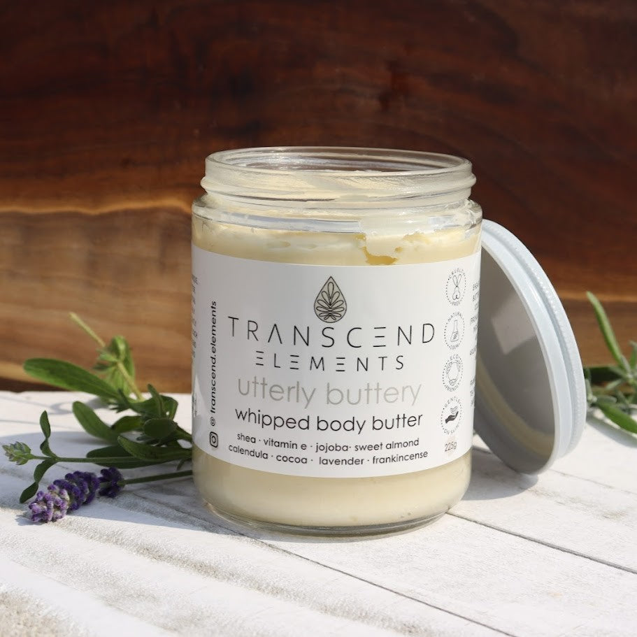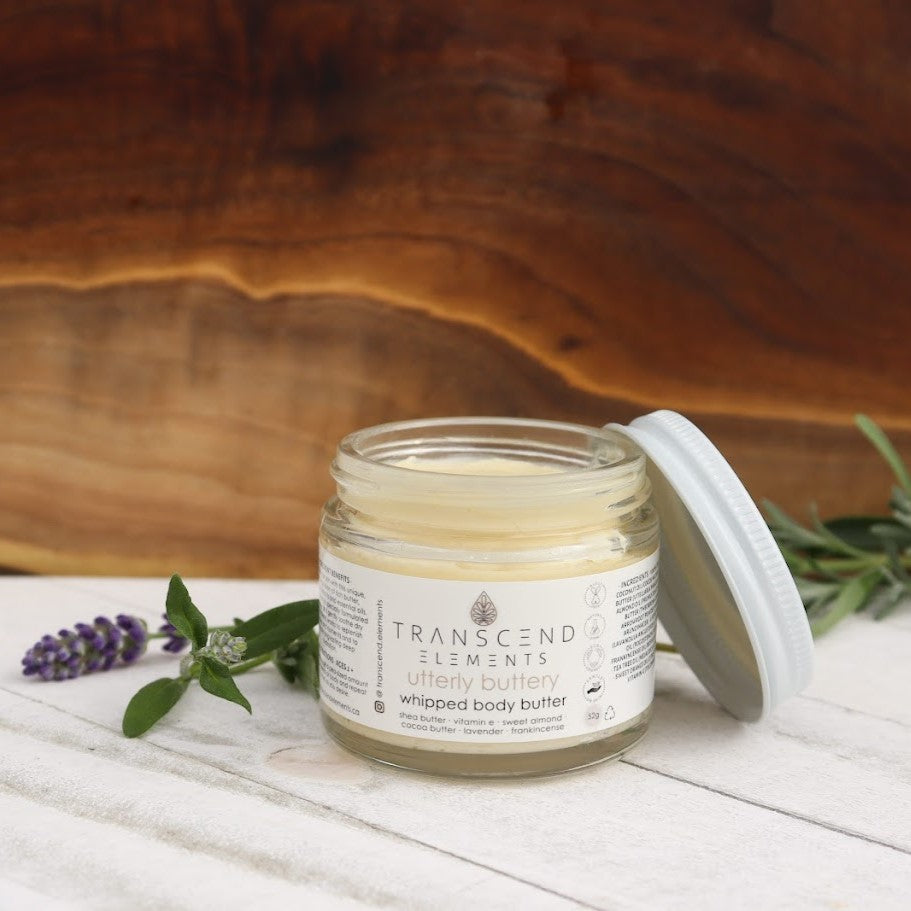 Utterly Buttery is a unique, nourishing blend of rich butters, botanical extracts, and essential oils. This whipped body butter is specially formulated to hydrate and soothe dry skin, while working to nourish your skin's moisture barrier.